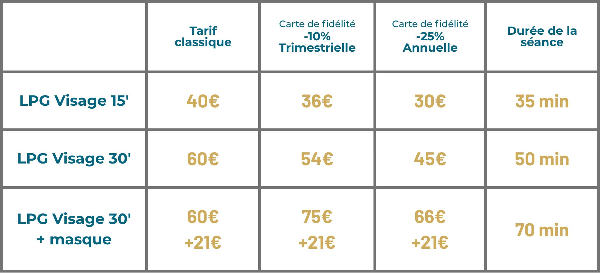 Une seule séance de LPG Visage suffit pour obtenir un effet bonne mine immédiat. Toutefois, pour agir de manière plus ciblée sur les rides plus marquées, nous recommandons une cure de 8 séances à raison de 2 séances par semaine pendant un mois. Afin de vous soutenir dans votre projet de bien-être durable, CAP NATURA vous propose son offre spéciale : pour 7 activités achetées, la 8ème est offerte !